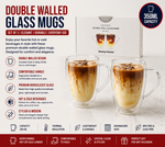 Features: These mugs are crafted from clear, high-quality glass and are dishwasher safe. They feature an ergonomic handle for a comfortable grip