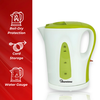 the Ramtons RM/349 is an efficient 1.7-litre cordless electric kettle featuring a vibrant white and green design, built for fast boiling and safety in 2026. Key Specifications Power: 1850–2200 Watts ensuring rapid boiling for tea, coffee, or...