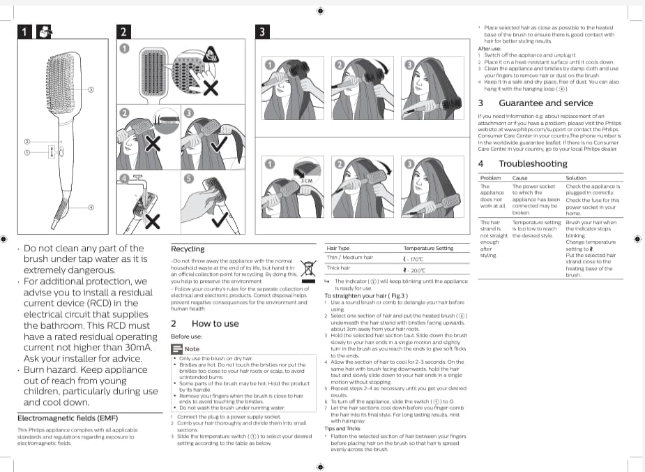 Design Large paddle-shaped brush with a triple bristle design to detangle gently and straighten more hair in one go