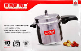 he SARAL 12L Pressure Cooker is a large-capacity, heavy-gauge aluminum cooker designed for fast, efficient sand safe cooking, featuring heat-resistant handles, a secure lid lock, pressure release safety valve, and steam...