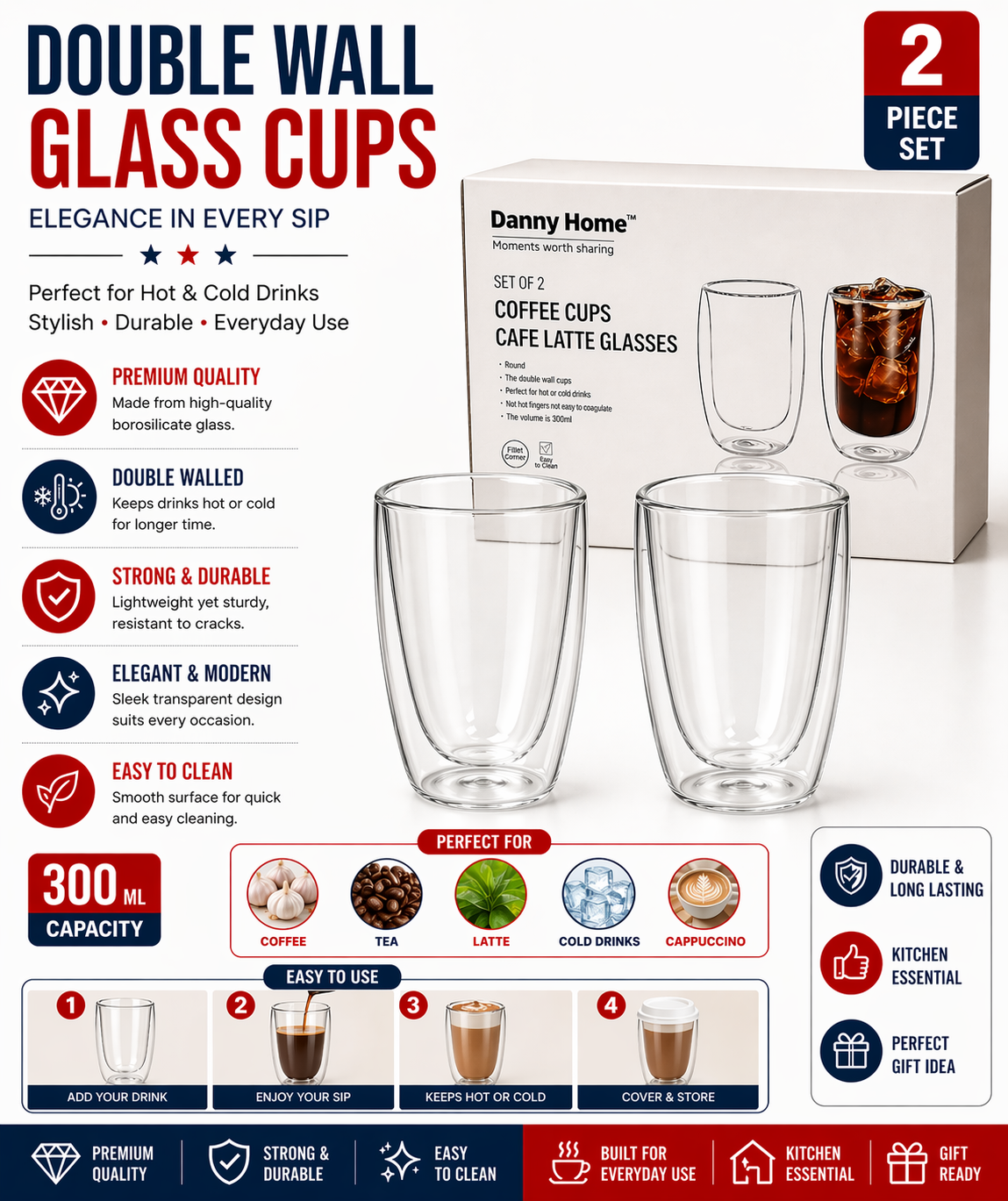 Product Info The double-walled glass is perfect for enjoying latte, cappuccino, tea, smoothies, juice and other hot or cold beverages. The double wall creates an insulating layer that keeps your...