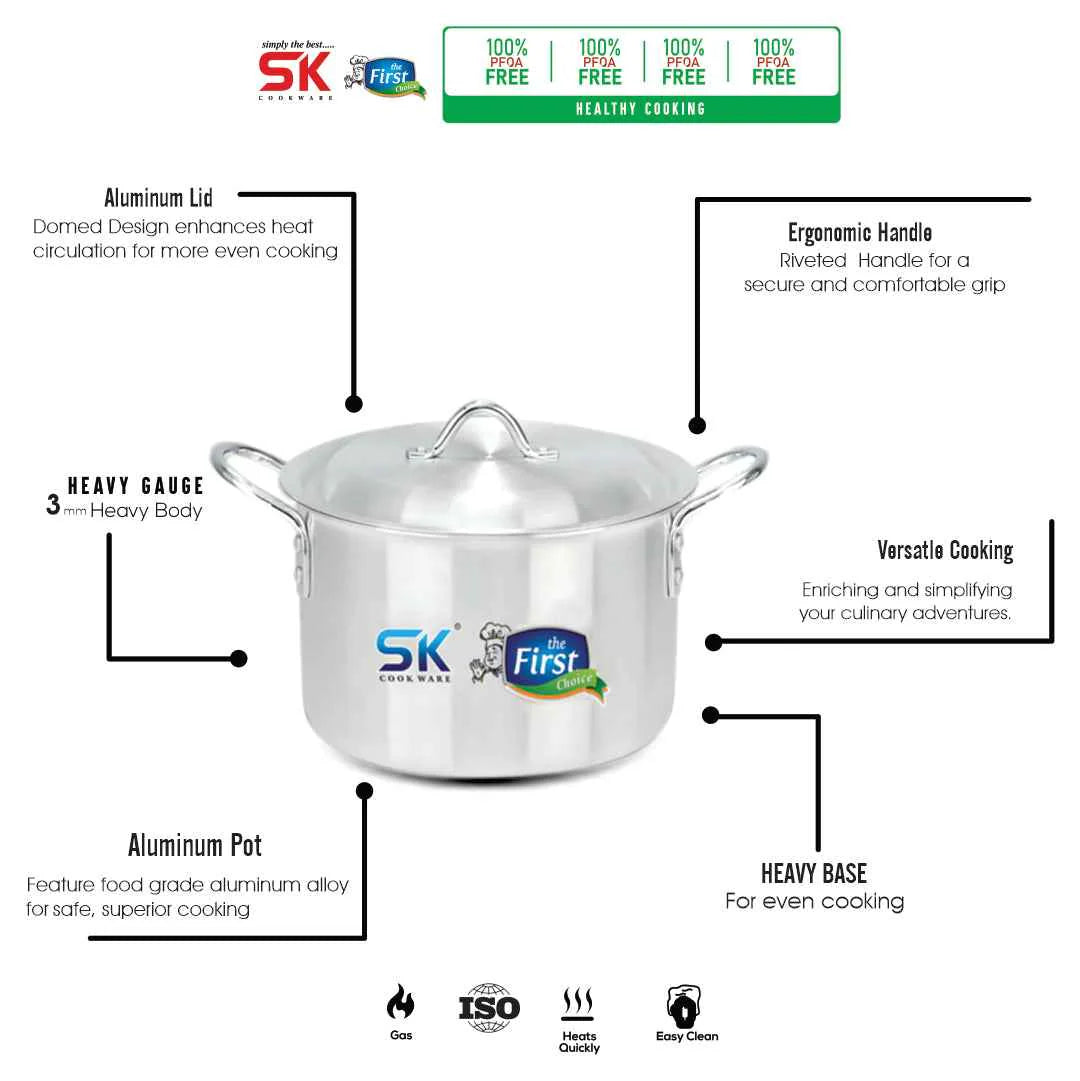 The 33cm 16L SK Royal refers to a 16-liter aluminum casserole pot with a 33 cm diameter. Product Information Brand: SK Cookware Product Type: Casserole pot / Daigchi Capacity: 16 Liters Diameter: 33 cm Depth: 18 cm...