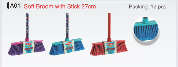 The A01 Soft Broom with Stick is a cleaning tool designed for efficient sweeping, featuring soft bristles and a sturdy handle. Product Overview: Design: Soft brooms typically feature gentle bristles...