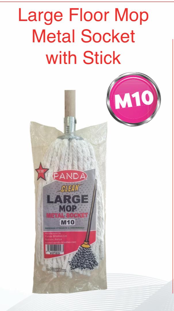 The M10 Large Floor Mop with Metal Socket and Stick is a cleaning tool designed for efficient floor maintenance, especially in larger areas.