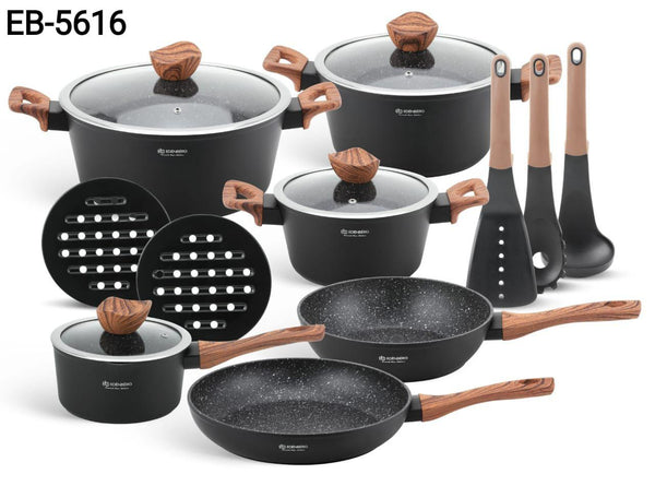 The Edenberg EB-5615 12-Piece Black Marble Cookware Set is a comprehensive collection designed to meet various cooking needs with style and efficiency. Crafted from pressed aluminum, this set offers excellent...