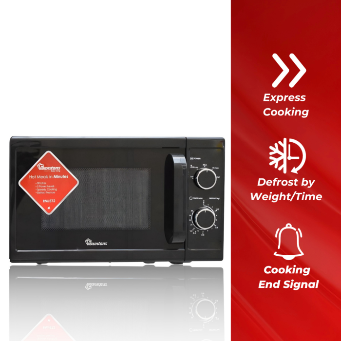 The Ramtons 20Lt Microwave Manual Black (RM/672) is a compact and efficient solo microwave featuring user-friendly manual dial controls, a 20-liter capacity, and a power output of 700 watts for everyday heating and defrosting needs. Key Features...