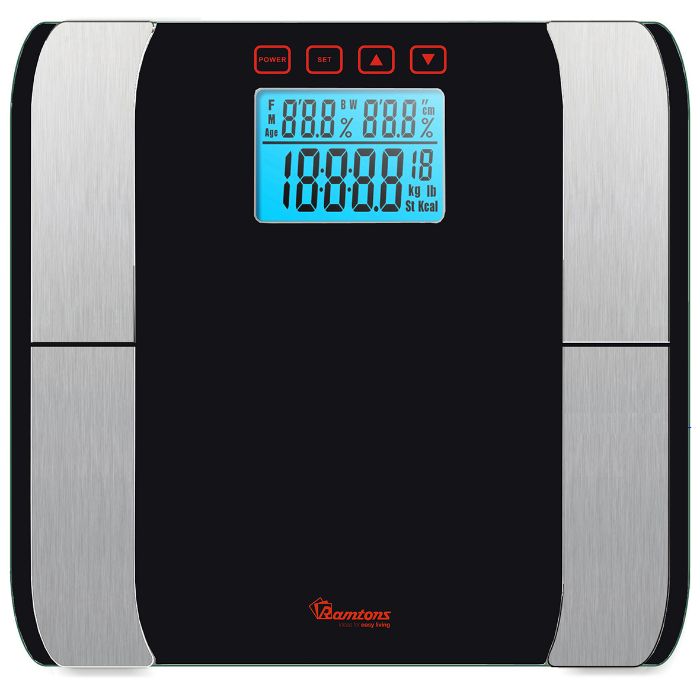 The Ramtons Bathroom Scale with Body Fat (RM/491) is a digital scale that provides a comprehensive body composition analysis, measuring not only weight but also body fat and body water percentages. It has...