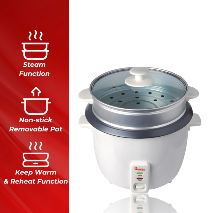 The Ramtons Rice Cooker + Steamer 2.8Lts (Model RM/290) is an efficient and simple appliance designed for easy rice preparation and steaming, ideal for larger families or gatherings. Key Features and Specifications Capacity: A...