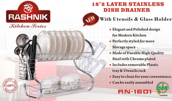 The Rashnik RN-1601 Dish Drainer is a practical kitchen accessory designed to streamline dish drying and organization. Key Features: Material: Constructed from high-quality stainless steel, ensuring durability and resistance to...