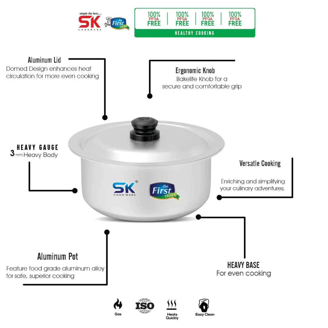 The SK Anodized Pot size 7 (also referred to as a Casserole or Daigchi) is an ultra-durable cooking pot made from heavy gauge aluminum that has undergone an electrochemical process to create a hardened, scratch-resistant,...